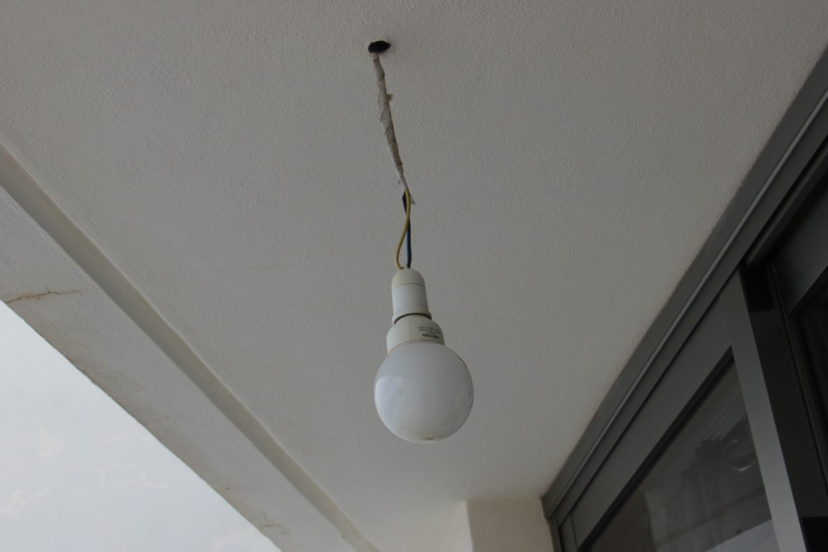 Auf der Terrasse fehlt die Verkleidung der Deckenlampe. Es gibt nur eine nackte Glühbirne. Sie steht symbolisch für die gesamte Wohnung: funktional im weitesten Sinne, doch potenziell gefährlich und ohne jeden Anspruch auf Ästhetik.