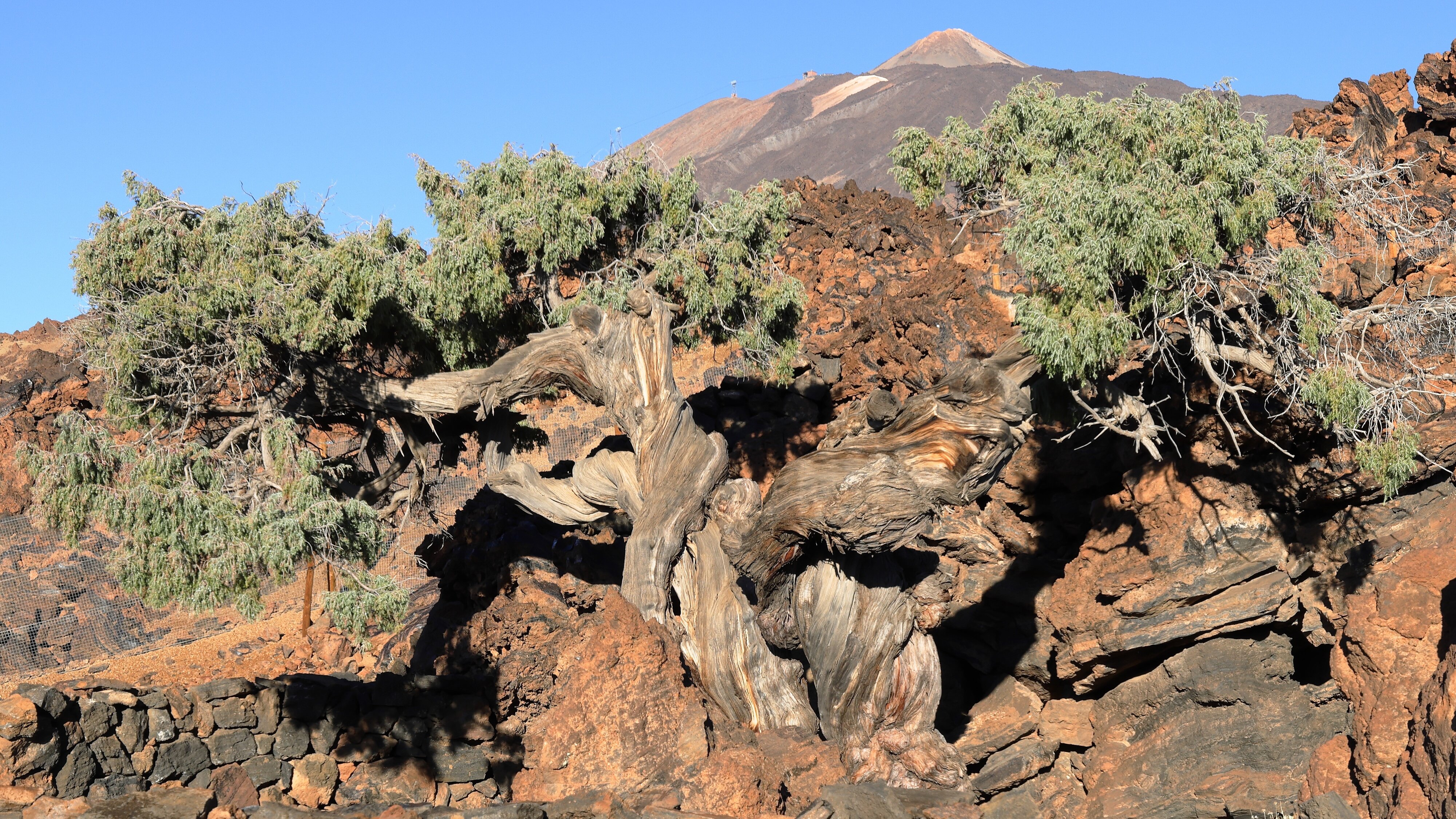 Denn weit oben, nahe dem Teide, steht ein viel älterer Baum. Die kanarische Zeder mit dem Namen „Patriarch“ wirkt wie ein Fremdkörper in einer eigentlich relativ lebensfeindlichen Umgebung. Doch dieser Überlebenskünstler ist im Jahr 2025 satte 1544 Jahre alt geworden. Das ist er: